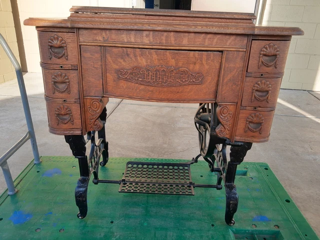 Vintage White Rotary Treadle Sewing Machine In Carved Wood Cabinet Look 950 00 Picclick